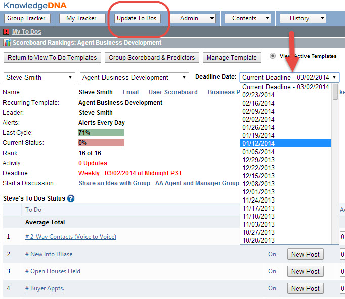 - Select the Update To Dos button at the top left of the screen.